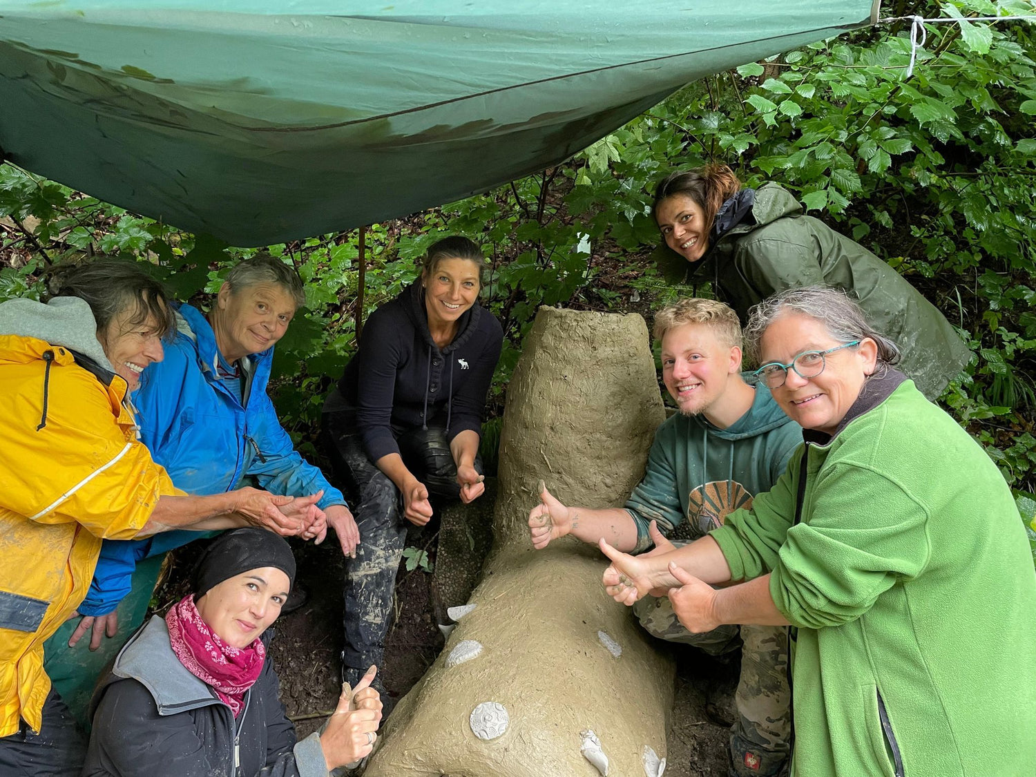 Auf dem Gelände der KreativWerkstatt Allerleirauh wurde im Rahmen eines Workshops ein traditioneller Brennofen aus Naturmaterialen gebaut.